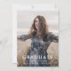 Esta tarjeta de invitación para graduados de fotografía con tipografía de moda es la invitación perfecta para estudiantes de secundaria o graduados universitarios. El diseño es sencillo y presenta una tipografía minimalista clásica en blanco y negro con un toque rústico de boho. Personalice la parte delantera de la tarjeta con una foto, el nombre de sus graduados, la escuela y el año.