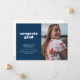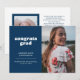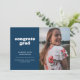 Anunciar el gran logro de tu graduado con esta simple pero elegante invitación de graduación. Presenta las palabras "felicitaciones grad" en un tipo de letra de estilo retro blanco sobre un fondo azul oscuro así como espacios para una foto tanto en el frente como en la parte posterior. La parte trasera de la invitación también tiene espacio para una nota personal acerca del graduado, incluidos planes futuros.