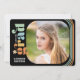 Esta tarjeta de invitación para graduación fotográfica multicolor presenta un tema retro con colores y mareas boho. La foto cuadrada está acentuada con esquinas redondeadas. El reverso le ofrece texto personalizado para que añada el nombre de la escuela y planes futuros.