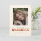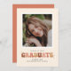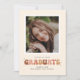 Esta divertida invitación de graduación inspirada en el retro presenta la palabra graduada escrita en cuatro tonos de tierra. Tiene espacio para una foto en el frente y en la parte posterior. La parte posterior también incluye espacio para más texto.