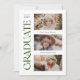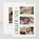 Celebra tu logro con estilo con esta invitación de graduación de fotos múltiple. Presenta el graduado de la palabra escrito en un elegante serif verde a lo largo del costado y tiene espacio para tu nombre, colegio y año de clase junto con tres fotos en la parte delantera. La parte trasera de la invitación tiene espacio para otra foto junto con un breve mensaje. Ya sea que te gradúes de la secundaria, la universidad o más allá, ¡esta invitación es la manera perfecta de celebrar tus logros!