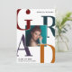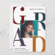 Me encanta esta plantilla de invitación fotográfica de graduación de moda. Este diseño de alta calidad es fácil de personalizar para ser único suyo. Simplemente suba tu foto favorita de graduados y personalizar el nombre, año y nombre de la escuela, collage o universidad. Moderno en su diseño con sofisticada combinación de colores para describir la palabra GRAD. Adecuado tanto para estudiantes chicas como para niños - ¡Celebremos el graduado!