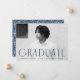 Anuncie el logro de su graduado con estilo con esta moderna invitación de graduación de la marina que incluye una foto horizontal de sangre completa y "Graduado" en negrita con letras de Art Deco. Personalice este elegante diseño de foto única con el nombre del graduado, la escuela y el año de graduación para un toque único y profesional. En la parte trasera se observa una sofisticada combinación de marina y movimiento geométrico blanco, lo que aporta un toque contemporáneo. Perfecto para graduados de secundaria y universitarios, esta invitación de personalizable es una manera memorable de compartir el gran logro de su graduado con la familia y amigos.