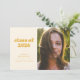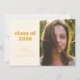 Esta invitación de graduación inspirada en el retro amarillo dorado y blanquecino pone el foco en tu graduación con una sola foto en el frente y en la parte posterior. La parte posterior de la invitación también tiene espacio para escribir un mensaje breve o actualizar.