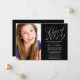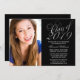 Una elegante clase de letras en negro y plata de la invitación de la fiesta de graduación 2019. ¡Perfecto para una graduación de secundaria, una graduación universitaria o una fiesta de graduación! Los diseños son ilustraciones/gráficos impresos planos - NO RELIEVE METALIZADO PLATEADO REAL. Para redimensionar y posicionar su foto, haga clic en el botón "PERSONALIZAR".