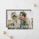 Tarjeta simple de invitación de graduación con múltiples fotos. La parte delantera tiene el nombre del graduado en grandes letras en negrita junto con el año de clase y el nombre de la escuela sobre tu foto favorita. El fondo tiene un collage con tres fotos sobre un fondo gris medio. El fondo puede cambiarse a cualquier color que desee. Este diseño moderno es perfecto para un graduado.