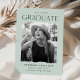 ¡Celebra el gran hito de tu graduación con estos modernos anuncios de graduación fotográfica! El diseño presenta el año de graduación en la parte superior con el "Graduado" que se muestra abajo en letras modernas y negras. La foto del graduado se muestra dentro de un marco verde menta con bordes rotos. Personalice la invitación añadiendo el nombre del graduado, el nombre de la escuela y los planes futuros (universidad, ejército, elección de carrera, etc.). La tarjeta se invierte para mostrar un fondo verde de menta sólido.