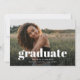 Celebra tu logro con estilo con esta Invitación de Graduación de Fotografía de Texto en Negrita Blanca Moderna. Diseñada con un diseño elegante y contemporáneo, esta invitación presenta un texto negrita "Graduado" en blanco nítido, complementado con su foto favorita para un toque personalizado. Perfecto para compartir su hito con la familia y los amigos, este diseño minimalista y sorprendente garantiza su logro. ¡personalizable total de hacerlo único tuyo!