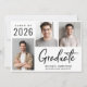 Anuncio de graduación de la clase de 2026 moderno que incluye 3 fotos y "Graduado" en una escritura contemporánea. Agrega el nombre del graduado, año de clase y escuela o universidad en tipografía simple.