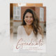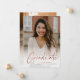 Una moderna Invitación de graduación de foto con guión de oro Rosa con letra manuscrita, foto de retrato de sangre completa en el frente con detalles de nombre y graduación. La parte trasera tiene una segunda foto y detalles adicionales. Haga clic en el botón de edición para personalizar de este diseño.