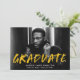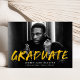 Anuncie su graduación con nuestros anuncios de graduación de fotos de Modern Paint Splatter. El diseño presenta la foto horizontal del graduado con "Graduado" en letras amarillas con salpicaduras de pintura blanca. Personalice la parte delantera de los anuncios creativos de graduación agregando el nombre del graduado, el nombre de la escuela y el año de graduación. La parte posterior de la invitación tiene un fondo amarillo con manchas de pintura blancas. El diseño es perfecto tanto para graduados de secundaria como universitarios.