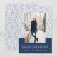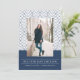 Anuncio de Graduación de la Marina Moderna. Este elegante anuncio de graduación presenta una foto vertical para personalizar con un patrón geométrico azul marino y blanco.
