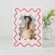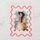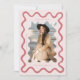 Extravagante y única tarjeta de invitación para graduación para mandarla a la familia y amigos. Hay una línea sacudida a mano alrededor de tu foto con el nombre del graduado debajo. Fondo rosa Rubor.