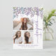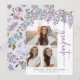 Invitación de Graduación Morada Floral. Anuncie su graduación de secundaria o universitaria con estilo con esta carta rústica, moderna y bien hecha, que presenta tres espacios de fotos frontales rodeados de elegantes colinas de agua en morado suave, rosas de lavanda y flores silvestres azules con vegetación exuberante, y un patrón de coordinación en la parte posterior. Celebra tu hito de primavera o verano personalizando la redacción, los estilos de fuente, los colores y los tamaños para crear un toque de mantenimiento con un atractivo eterno.