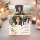 ¡Clase de 2024! Anuncie su graduación con nuestro prado bohemio de flores silvestres pastel primavera verano 3 fotos fiesta con flores de campo silvestre bonito en naranja boho retro, rojo, melocotón, hojas verdes, helecho y más, con una tipografía de escritura cepillada en un elegante y editable fondo de marfil beige suave.