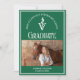 Esta tarjeta de invitación de graduación de la escuela veterinaria verde personalizado presenta tipografía blanca para una clase de graduado 2025 sobre su foto de estudiante. Personalizar con su año de graduación bajo el médico veterinario caduceus y fotografía para una tarjeta veterinaria personalizada.