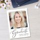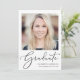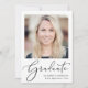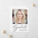 Celebra tu graduación con esta invitación de graduación que muestra a "Graduada" en un guión elegante y su foto y su nombre, colegio y curso de clase en una simple tipografía moderna.