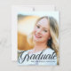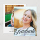 Esta elegante tarjeta de graduación con superposición de tipografía negra presenta un guión cursivo elegante sobre su fotografía de graduación de escuela secundaria o universidad. Personalice con su nombre y clase bajo la encantadora caligrafía y agregue una segunda imagen en el reverso, junto con sus datos personales para un graduado de la clase de 2026.