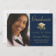 Anuncie su graduación de la escuela secundaria de 2020 a la familia y amigos con esta elegante tarjeta plana personalizada para fotos. El diseño presenta su foto a la izquierda (3,5 anchura x 5 altura funciona mejor) a la derecha en un fondo azul marino es una tapa y diploma falsos de oro y tipografía de oro en un guión moderno para que usted sea personalizar. ¡Felicitaciones por tu graduación! Diseñado por la artista Susan Coffey.