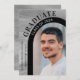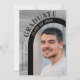 Celebra tu graduación de bachillerato en 2024 con esta moderna y elegante invitación de graduación. Este impresionante diseño gris y negro presenta un arco con una tipografía moderna y audaz. Personalizable fácil con tu foto y detalles.