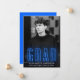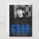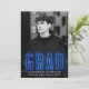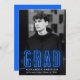 Anuncie el logro especial de su graduación con nuestros anuncios de graduación de neón. La moderna invitación de graduación muestra la foto vertical del graduado con "Grad" en letras azules de neón. Personalice la invitación de graduación del neón añadiendo el nombre del graduado, el nombre de la escuela y el año de graduación. La invitación se invierte para mostrar un fondo azul sólido con espacio para fotos y/o texto adicionales. La invitación de graduación fotográfica es perfecta tanto para graduados de secundaria como universitarios.