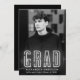 Anuncie el logro especial de su graduación con nuestros anuncios de graduación de neón. La moderna invitación de graduación muestra la foto vertical del graduado con "Grad" en letras blancas de neón. Personalice la invitación de graduación del neón añadiendo el nombre del graduado, el nombre de la escuela y el año de graduación. La invitación se invierte para mostrar un fondo negro sólido con espacio para fotos y/o texto adicionales. La invitación de graduación fotográfica es perfecta tanto para graduados de secundaria como universitarios.