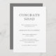 Tarjeta de invitación clásica de graduación en gris y blanco con un diseño simple y minimalista con "Grado de felicitación" y el nombre del graduado en negrita. El reverso es un gris sólido. Una tarjeta de invitación tradicional con un toque masculino para un joven graduado.