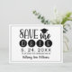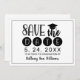 Anuncie su graduación a su familia y amigos con esta elegante tarjeta plana de fecha. Esta plantilla de diseño presenta un diseño moderno de tipografía en blanco y negro acentuado por un tapón de graduación. La parte delantera de la postal dice "Guardar la fecha para asistir a la graduación de" en un guión moderno con la fecha y el nombre que usted puede personalizar. La parte posterior de la tarjeta postal contiene más detalles de su graduación, incluida una invitación de fiesta para su personalizar. ¡Felicidades por tu graduación! Diseñado por la artista ©Susan Coffey.