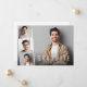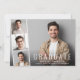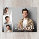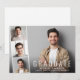 Tarjeta plana minimalista moderna de invitación de graduación con la foto del graduado mostrada con una tipografía blanca simple con una tipografía de tres fotos cuadradas más pequeñas y "Graduado", su nombre, año escolar y de clase.
