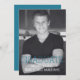 Moderna invitación de graduación de arte verde azulado minimalista para una simple fiesta de graduación universitaria o de secundaria, una casa abierta o una celebración de graduación. Personalice el texto y agregue su foto vertical de graduación. El espacio para un mensaje personal del graduado se incluye en la parte posterior de la invitación.