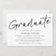 Esta es una invitación de graduación moderna y simple. Utiliza un diseño de escritura manuscrita minimo y elegante en blanco y negro clásico, con una foto en la parte posterior. Este diseño aplica un filtro en blanco y negro a la foto, para eliminar o cambiar esto pulse el botón azul para editar su diseño, luego seleccione la foto y edite la configuración del filtro en consecuencia. Póngase en contacto con el diseñador para cualquier consulta sobre este diseño.