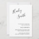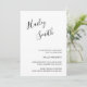 Simple tarjeta de invitación de graduación de chica blanco y negro con el nombre del graduado en un guión escrito a mano en la parte superior izquierda y detalles de graduación en alineación derecha en la parte inferior derecha. La letra de la moda aporta un toque elegante a este diseño moderno y minimalista.