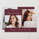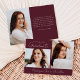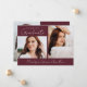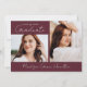 Anuncie los logros y planes de tu graduación con esta elegante y moderna invitación de graduación fotográfica. La parte delantera de la invitación muestra 2 fotos - 1 horizontal y 1 vertical. "Graduado" se muestra en un guión blanco a la moda y escrito a mano con fondo marrón. Personalice la invitación de graduación marrón con el año y el nombre del graduado. La invitación se invierte para mostrar una foto adicional con el texto de su personalizado con letras blancas. Esta invitación de 3 fotos es perfecta para graduaciones de secundaria o universitarias.