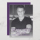 Moderna invitación de graduación minimalista de arte violeta para la universidad o fiesta de graduación simple de la escuela secundaria, casa abierta o celebración de graduación. Personalice el texto y agregue su foto vertical de graduación. El espacio para un mensaje personal del graduado se incluye en la parte posterior de la invitación.