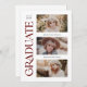Celebra tu logro con estilo con esta invitación de graduación de fotos múltiple. Presenta la palabra graduada escrita en un serif rojo y elegante a lo largo del costado y tiene espacio para tu nombre, colegio y año de clase junto con tres fotos en la parte delantera. La parte trasera de la invitación tiene espacio para otra foto junto con un breve mensaje. Ya sea que te gradúes de la secundaria, la universidad o más allá, ¡esta invitación es la manera perfecta de celebrar tus logros!