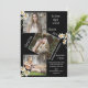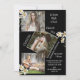 Invitación personalizada de la fiesta de graduación de 4 collage de fotos con fondo negro de moda. Se acentúa con las margaritas blancas de acuarela dulce. Simple y dulce. Agrega tus fotos especiales para crear tu propia invitación personal. Hay otros colores y estilos disponibles.