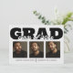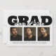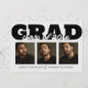 Nuestra nota en negrita es una Invitación de graduación perfecta con tres fotos de tu graduado orgullosamente en la parte inferior de la tarjeta de invitación mientras que una letra en negrita explica Grad. La parte trasera de esta invitación de graduación es un diseño moderno y moderno de cuadros negros formando diamantes.