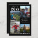 Invitación editable de graduación en blanco y negro con un collage de fotos de 4 fotos y el nombre del graduado en una letra manuscrita de una CLASE DE año editable. La parte posterior tiene un campo de texto opcional para incluir información adicional sobre el graduado (si no se desea, elimine el texto de ejemplo en ese campo). PUNTO DE FOTOGRAFÍA: Para obtener resultados más rápidos/mejores, elija una foto con el sujeto en el medio y/o pre-recorte en una forma similar a la que se muestra ANTES de subir. Póngase en contacto con el diseñador a través de Zazzle Chat o makeitaboutyoustore@gmail.com si desea modificar este diseño, en otro producto o si desea coordinar elementos.