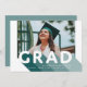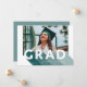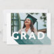 Esta invitación de graduación personalizada de 2 fotos que presenta la palabra GRAD en letras 3d con sombras en tonos verdes tiene un aspecto retro. Espacio para texto adicional y una foto en la parte posterior.