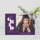 Celebra el gran logro de tu graduación con esta invitación de graduación moderna en color morado y blanco. Presenta la nota de la palabra escrita en un semental audaz a la izquierda con espacio para una foto del graduado a la derecha.