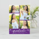 ¡Siéntete orgulloso, regocijo y exhibe este hito de tu graduación favorita! Envíe esta invitación de collage de fotos de caricatura femenina, impresionante, simple, moderna y personalizada para un evento que recordar. Una divertida y divertida imagen de escritura blanca manuscrita y corazones adorables y juguetones, junto con su nombre, año de clase, colegio y 4 fotos de tu elección, superponen un fondo morado. Personalice el texto del personalizado con el nombre de su graduado, el año escolar y el año de clase al frente. En la parte de atrás, agrega tu nota personal, la próxima escuela a la que asiste, etc. sobre el fondo morado. En esta moderna y elegante colección también hay disponibles invitaciones a juego, tarjetas de agradecimiento, gorros, servilletas, platos y otros artículos de graduación. ¡Garantizado para añadir un toque elegante a su ocasión especial! Simplemente teclee el nombre de tu graduado, el año escolar y de clase, agrega sus 4 fotos, y puedes personalizar fácilmente esta invitación de graduación. Por favor, envíame cualquier pregunta o petición.