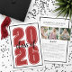 Una invitación de graduación vertical atemporal y versátil que presenta el año "2025" en negrita, rojo, con "clase de" elegantemente escrito en escritura negra a lo largo del medio. El diseño incluye unos elegantes marcos de línea negra en la parte delantera y en la parte trasera, lo que añade un toque pulido. Personalizable completo, puede ajustar el año, el texto y los colores de fondo para que coincidan con los colores de la escuela o el tema. La parte trasera refleja el frente con un marco limpio de línea negra, ofreciendo espacio para fotos y un mensaje sincero de los padres. Este sofisticado y clásico diseño es perfecto para celebrar este gran logro.