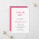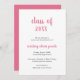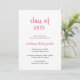 Tarjeta minimalista de invitación de graduación con un diseño simple y clásico con "clase de año" y el nombre del graduado en una escritura manuscrita rosa sobre fondo blanco. La parte trasera es rosa sólido. Una tarjeta de invitación tradicional con un toque moderno para un graduado chica.
