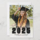Un enfoque clásico-moderno en una invitación de graduación con un elegante ambiente en blanco y negro. La parte frontal presenta una foto de página completa con un gradiente blanco en la parte inferior que se desvanece perfectamente en la imagen. Sobre el gradiente, "2025" aparece en un audaz tipo de letra clásico estilo escuela en negro. Por encima del año se encuentra "Graduado" en un tipo de letra de guión, que se puede cambiar a "Clase de" si se prefiere. Debajo del año, el nombre del graduado y el nombre de la escuela aparecen elegantemente. Todo el texto está en negro para un aspecto atemporal y sofisticado. La parte de atrás muestra una segunda foto dentro de un rectángulo redondeado, con espacio debajo para una nota sentida de los padres, destacando logros y expresando orgullo. Personalizable completo, puede editar el texto, las fuentes y las fotos para que coincidan con su estilo. Ideal para celebrar este gran hito con una estética moderna y elegante en blanco y negro.