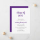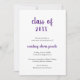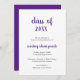 Tarjeta minimalista de invitación de graduación con un diseño simple y clásico con "clase de año" y el nombre del graduado en una escritura gruesa de escritura violeta sobre un fondo blanco. El trasero es púrpura sólido. Una tarjeta de invitación tradicional con un toque moderno para un graduado chica.