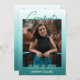 Una tarjeta de invitación para graduados única y a la moda con un fondo clásico de degradado gris oscuro de color verde verde azulado y azul turquesa. Con espacio para personalizar o personalización con una foto, el nombre del graduado, el año de graduación de clase, la escuela secundaria y el futuro nombre de la universidad o universidad. Que la familia, amigos y vecinos sepan que hay un feliz graduado listo para conquistar el mundo, ¡e inviten a todos a venir a celebrar el feliz evento contigo!