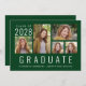 Simple invitación de graduación verde con un collage de fotos de 5 fotos y un "Graduado" escrito en la parte inferior en grandes letras blancas. Añada el año de clase, nombre y escuela o universidad en una simple tipografía blanca.