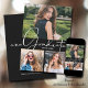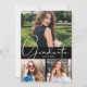 Agrega tus 3 fotos favoritas en la parte frontal de estos anuncios de graduación que presentan la clase y GRADUADO en letras elegantes sobre un fondo negro con tus detalles en la parte posterior. MÁS DISEÑOS en nuestra tienda.