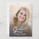 Guión moderno simple con dos fotos Invitación de graduación. Con una foto de tamaño completo en la parte delantera con texto superpuesto en blanco y una foto en el reverso con detalles opcionales.