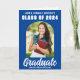 Esta moderna tarjeta de invitación doblada para personalizados blancos y azules presenta su nombre de instituto o universidad para la clase de 2025. Personalizar con su nombre bajo la moda, escritura manuscrita en negrita y arco de moda para una gran tarjeta de graduación personalizada. Añade una segunda fotografía completa en el interior junto con los detalles de tu inicio.